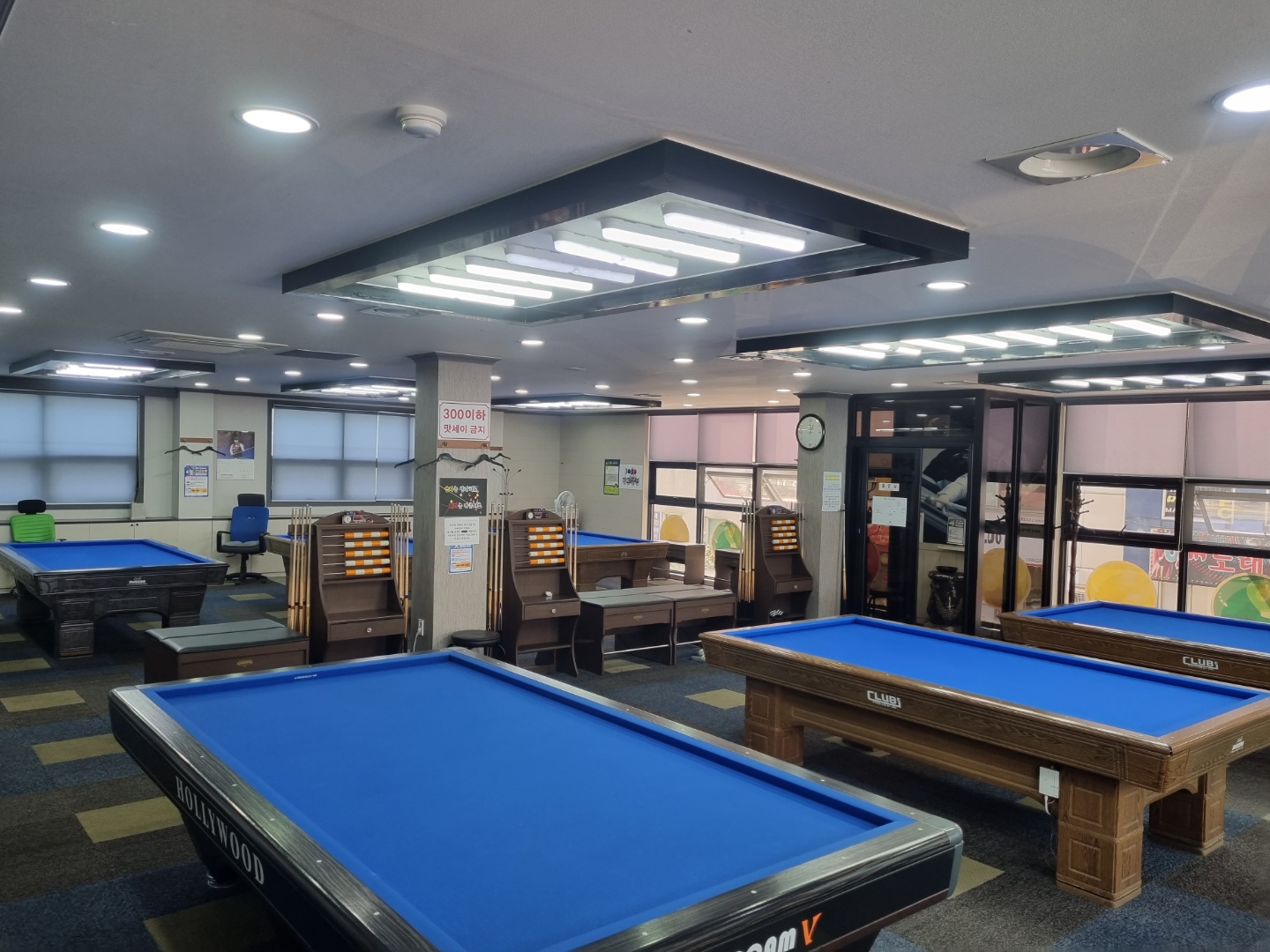일단 물결치는 다이에 깔끔함이 있는 당구장 입니다.